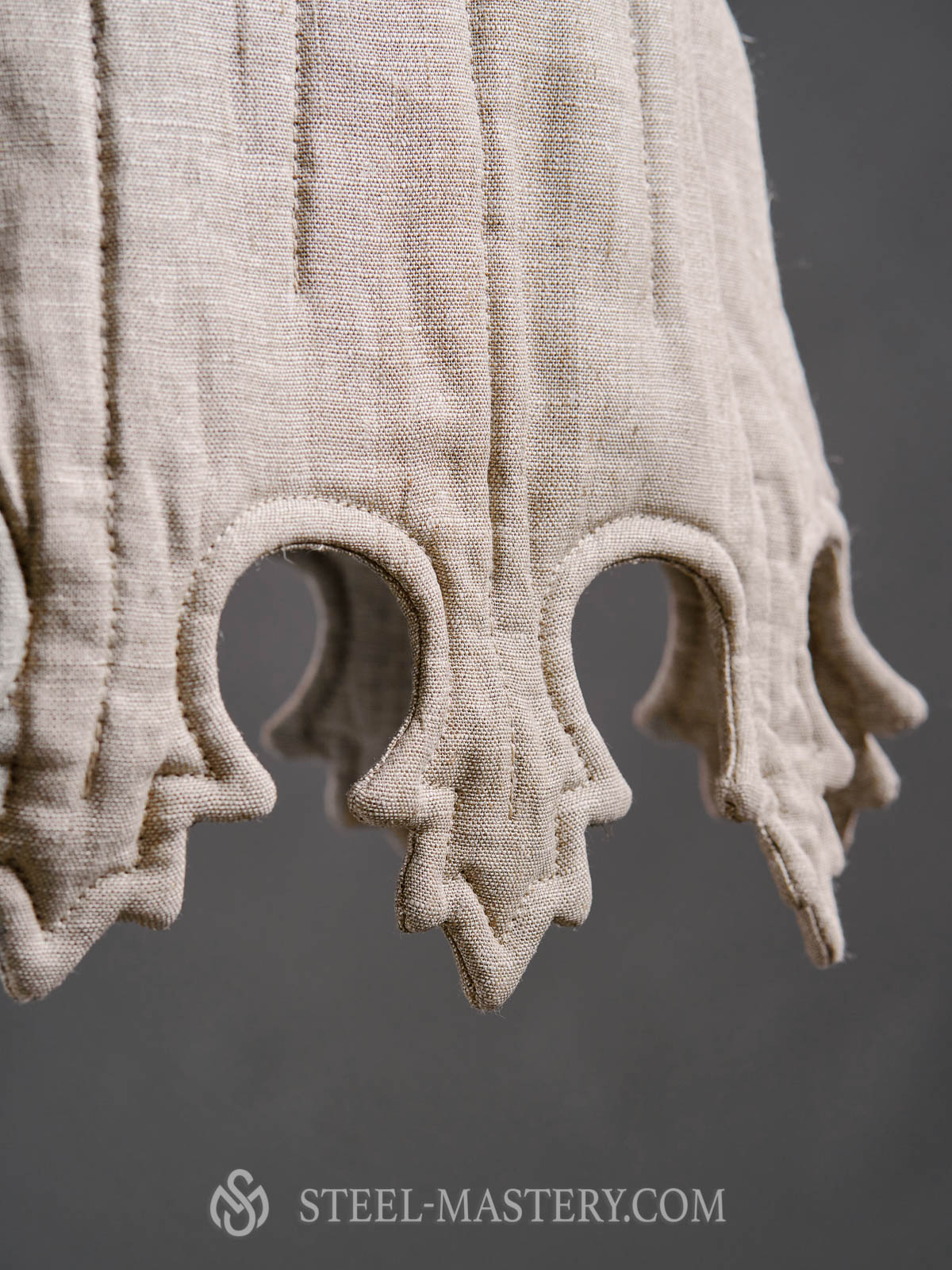 Most often, aketon was thinner than simple medieval gambeson armor. It had been sewn of expensive fabrics, decorated with embroidering or heraldic symbol of owner. The sleeves of this padded jacket were removable and had fastenings.