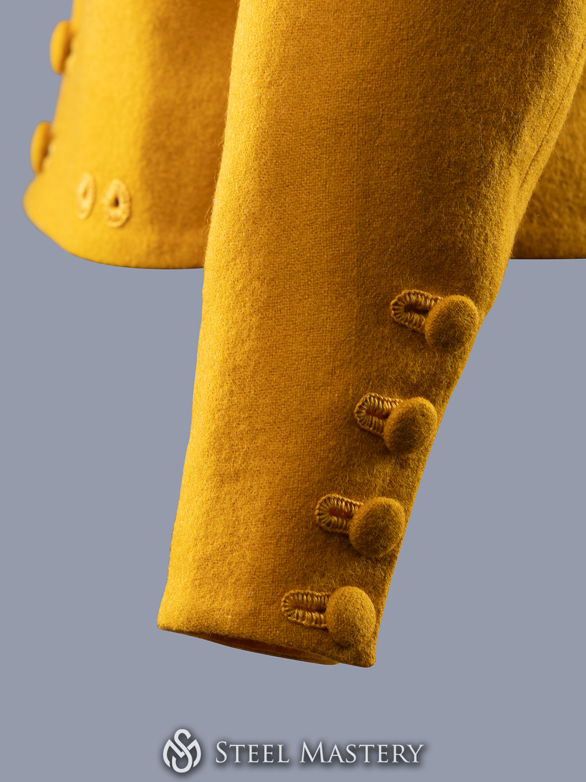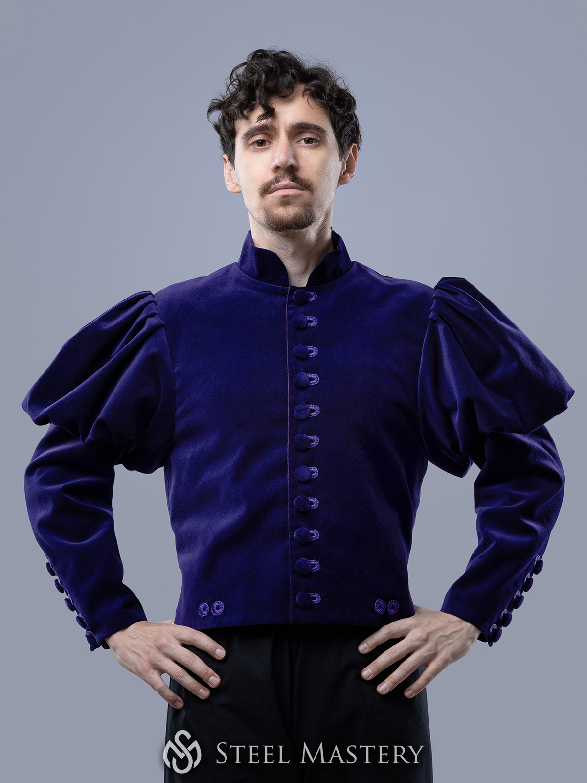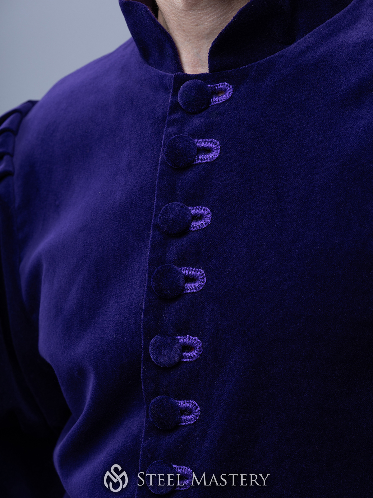 One of the defining features of the Burgundian doublet was the use of buttons, which were both functional and decorative. These buttons were typically made from materials like metal, bone, or wood, and were often covered with fabric to match the doublet. They ran down the front of the garment, allowing it to be securely fastened and providing a tailored fit.