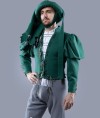 And finally on the handsome man's head is a stylish Burgundy chaperon of the XV century. And, gosh, it's absolutely gorgeous! A thick roll around his head, a lush pelerine and a long tail. We strongly advise you to order the custom wool model with carved festoons, hand-sewn edge and a contrasting lining, it looks absolutely chic and worth its price.