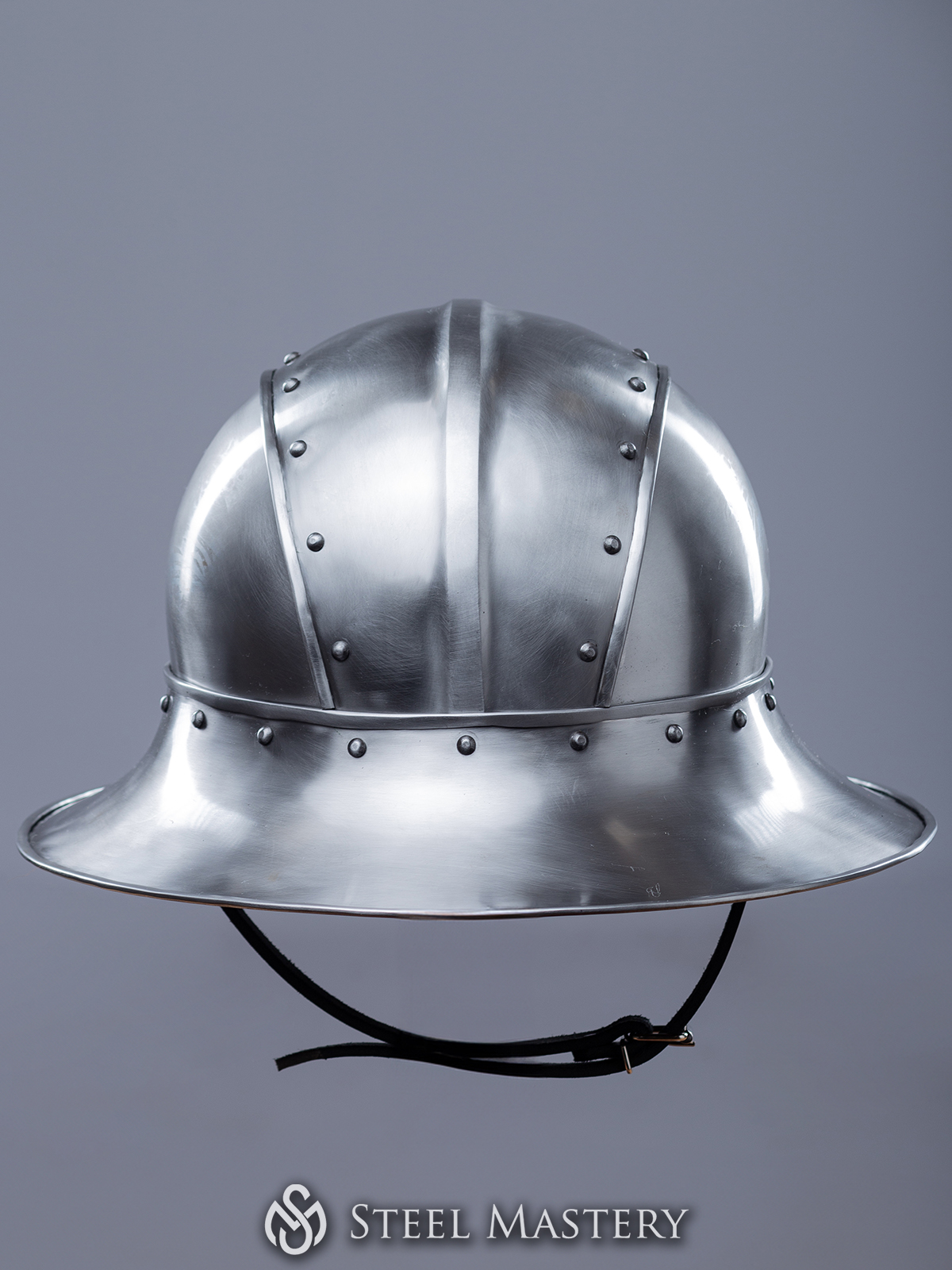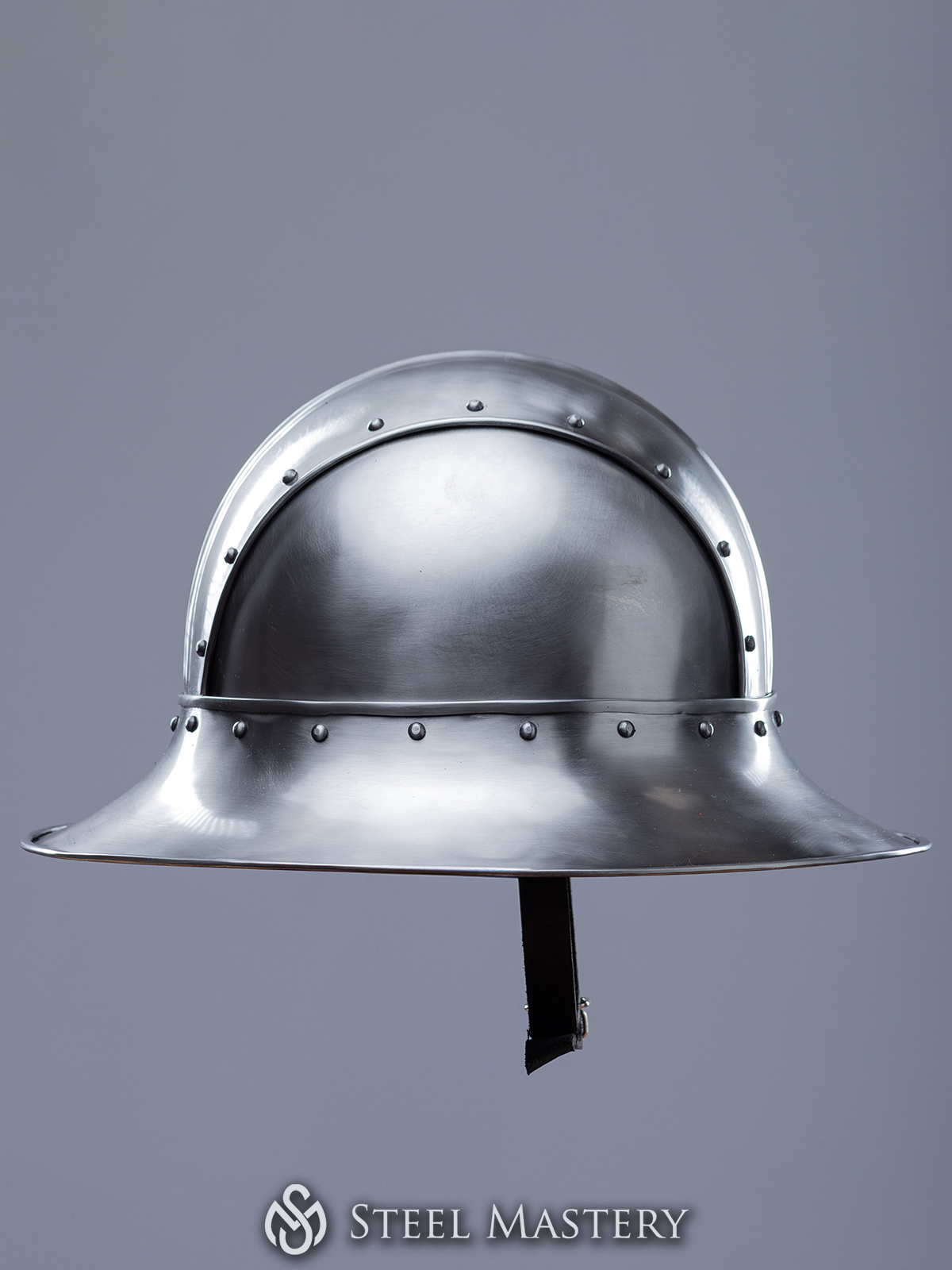 Helmet Chapel-de-Fer was popular among the infantry in the XIII-XVI centuries because of low price and easy producing. Such head protection is a type of medieval helmet Kettle hat – a steel cap with wide brims.