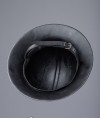 Helmet is fixed with underchin leather belt and buckle on the head.