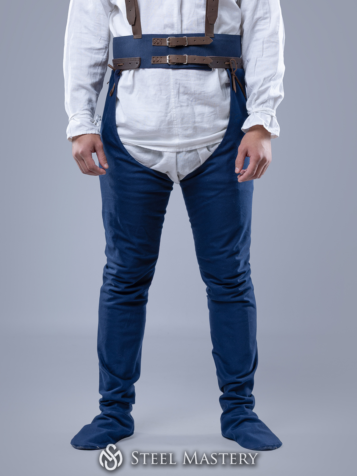 Chausses are being worn with braies and cotta. They are a part of soldier's costume.