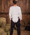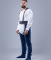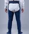 This model of chausses are being cut on the bias, that allows to make them rather tight on the legs. There are leather string on the top of the chausses, with what you can fasten chausses to the holes in braies or to the fabric belt.