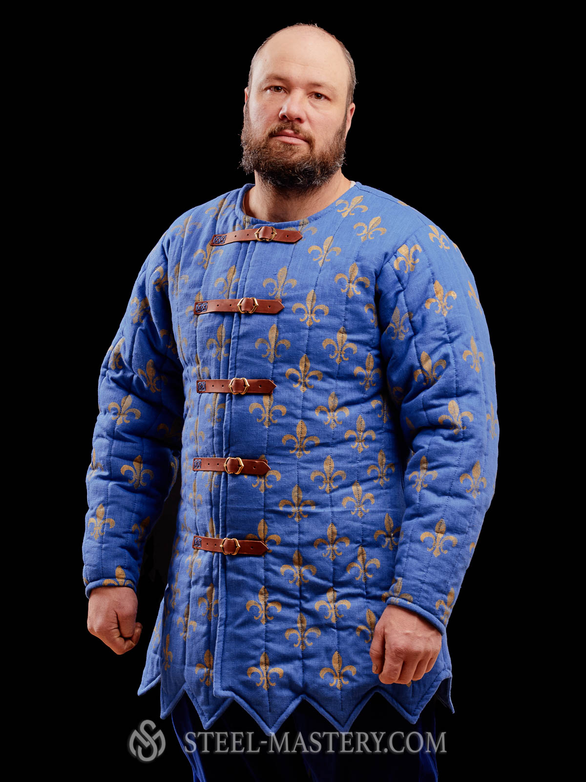 Of course, we can make you a more modest aketon, but let's be honest – who would ever wear anything modest when they have this gorgeous padded armor? And we hope we don't need to remind you that you can get a custom version – with a different type of bottom edge, quantity of padding layers, color, and type of fabric of cover and lining, decor, and fasteners. Anything you want.