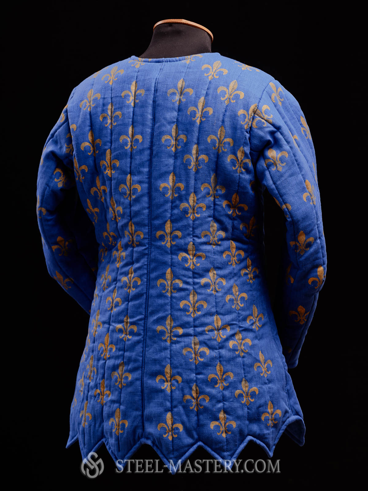 If you ever visit the Musee des beaux-arts in Chartres, France, you just can't miss an aketon of Charles VI of France – a rare surviving example of fabric armor from the late XIVth century. We couldn't miss it either. So, being unable to resist we sewed this gorgeous aketon for you. As the saying goes: no need to pray, it's okay, you're welcome.