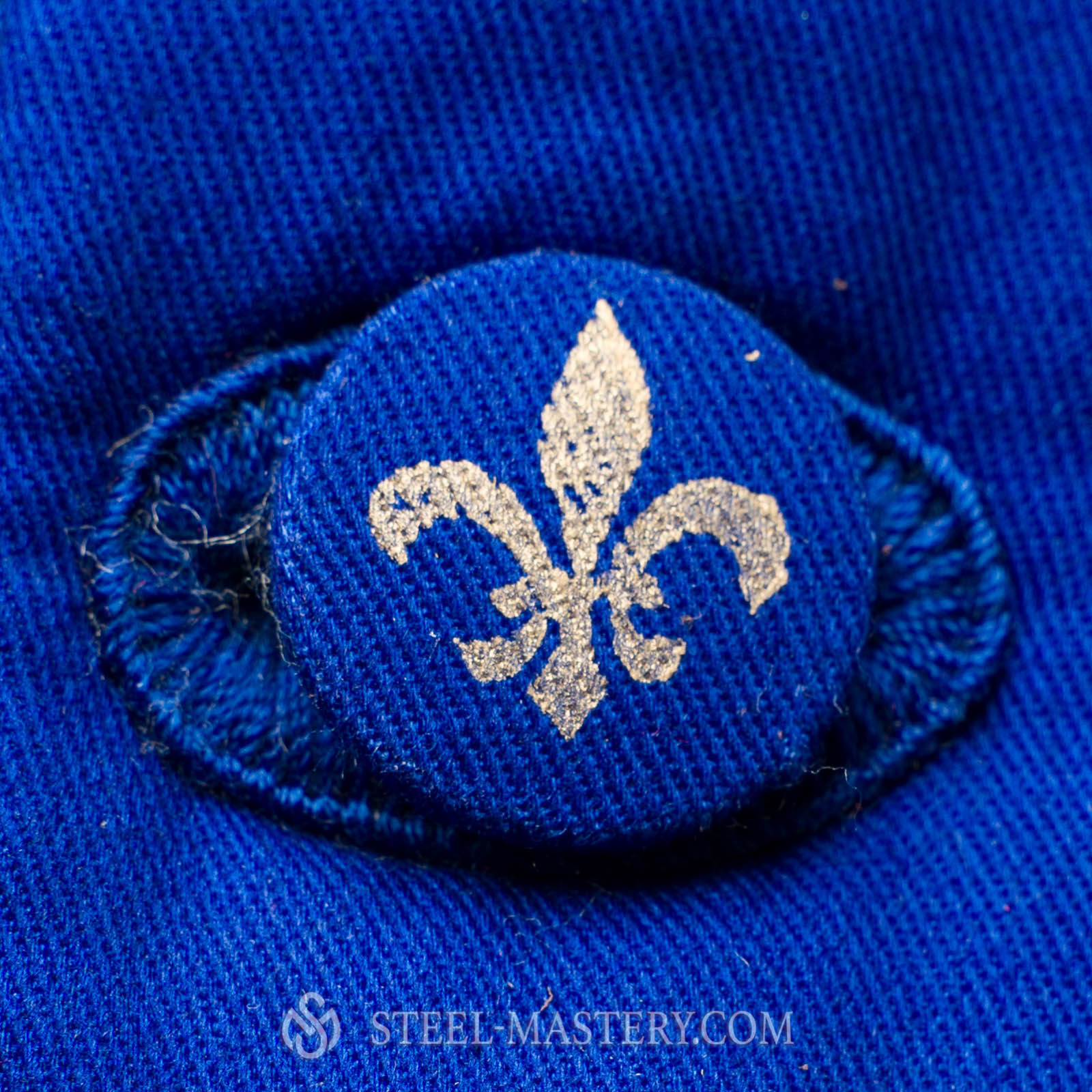 Although the original is scarlet red, we just had to make a version in deep blue color with a decoration of gold lilies. And, naturally, the coolest thing about our aketon is its print. Just appreciate how gorgeous these gold French lilies look on the Royal blue field. Heck, this aketon alone even without the knight's collar and crown already gives its wearer a royal look.