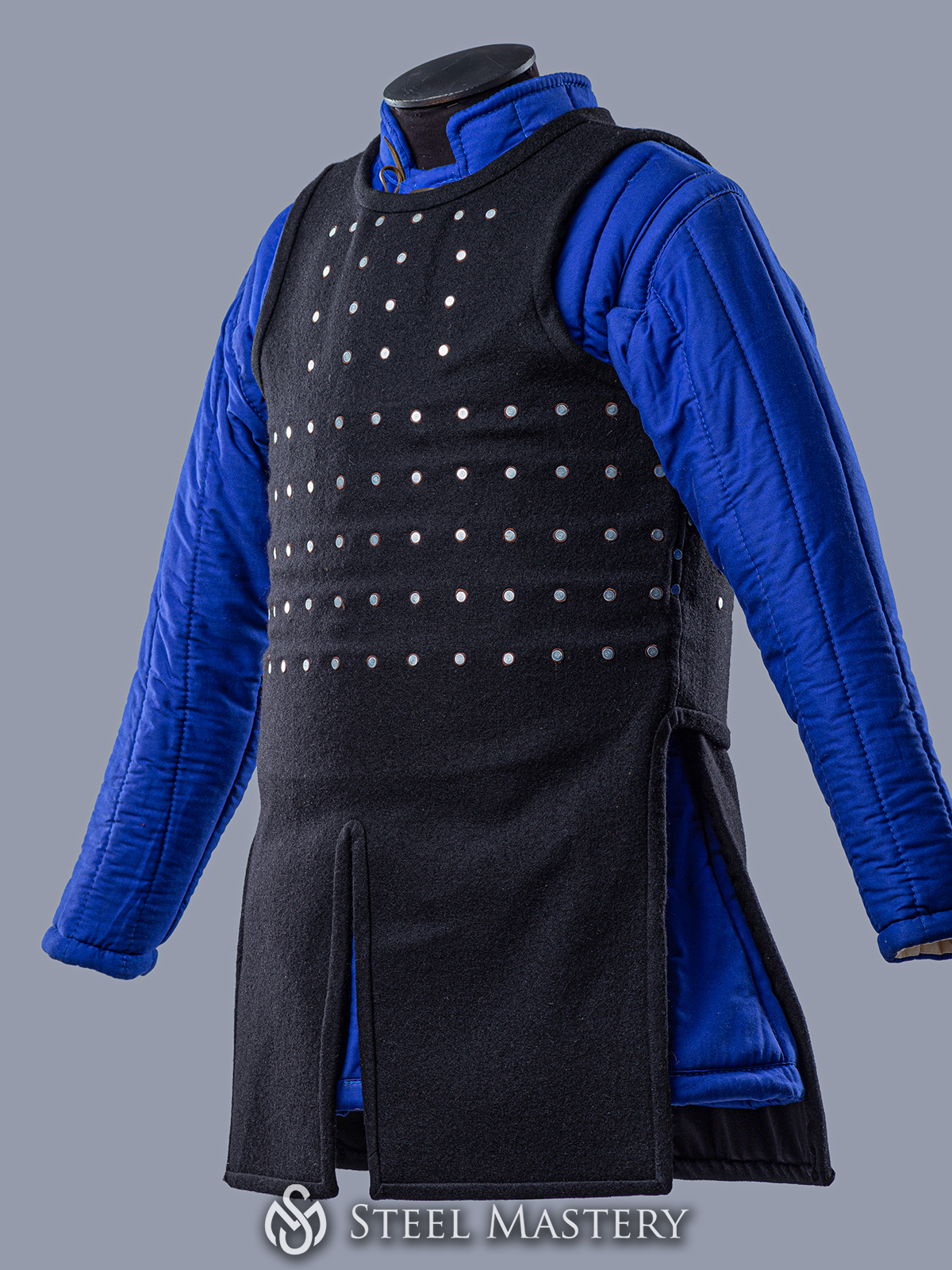 There are a lot of various fastenings and types of decoration of your brigand armor. We can make an embroidery of your personal emblem on the brigandine, or decorate the bottom edge with festoons of various form. Such options like figured brass rivets and trimmed bottom edge will make your medieval body protection really one-of-a-kind!