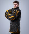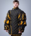 This gambeson is crafted in a fan-inspired style, drawing on the dark and perilous atmosphere of fantasy worlds. The base is deep black, symbolizing resilience and the harsh realities of battle. Bright yellow decorative stitching and sleeve details provide a vivid contrast, evoking the imagery of sunlight breaking through darkness.