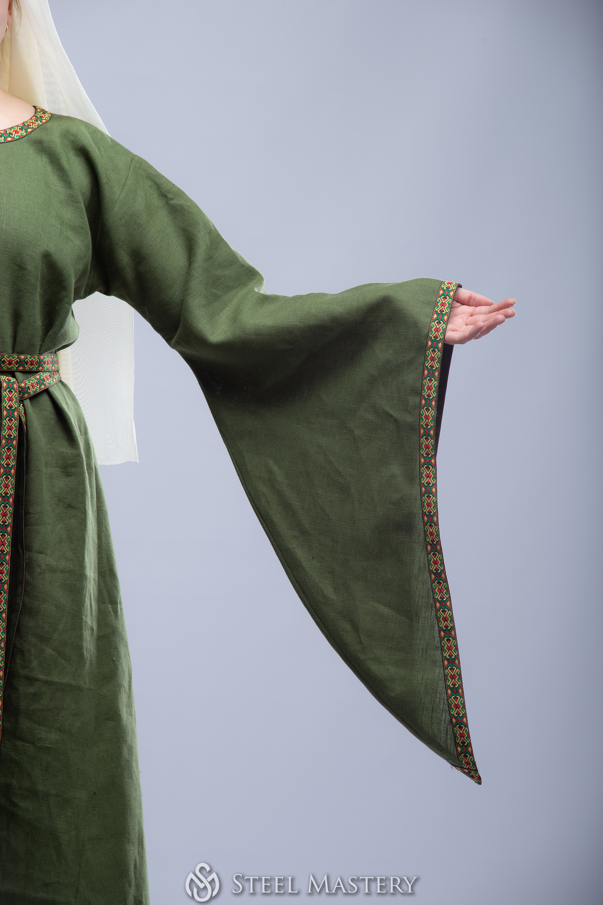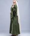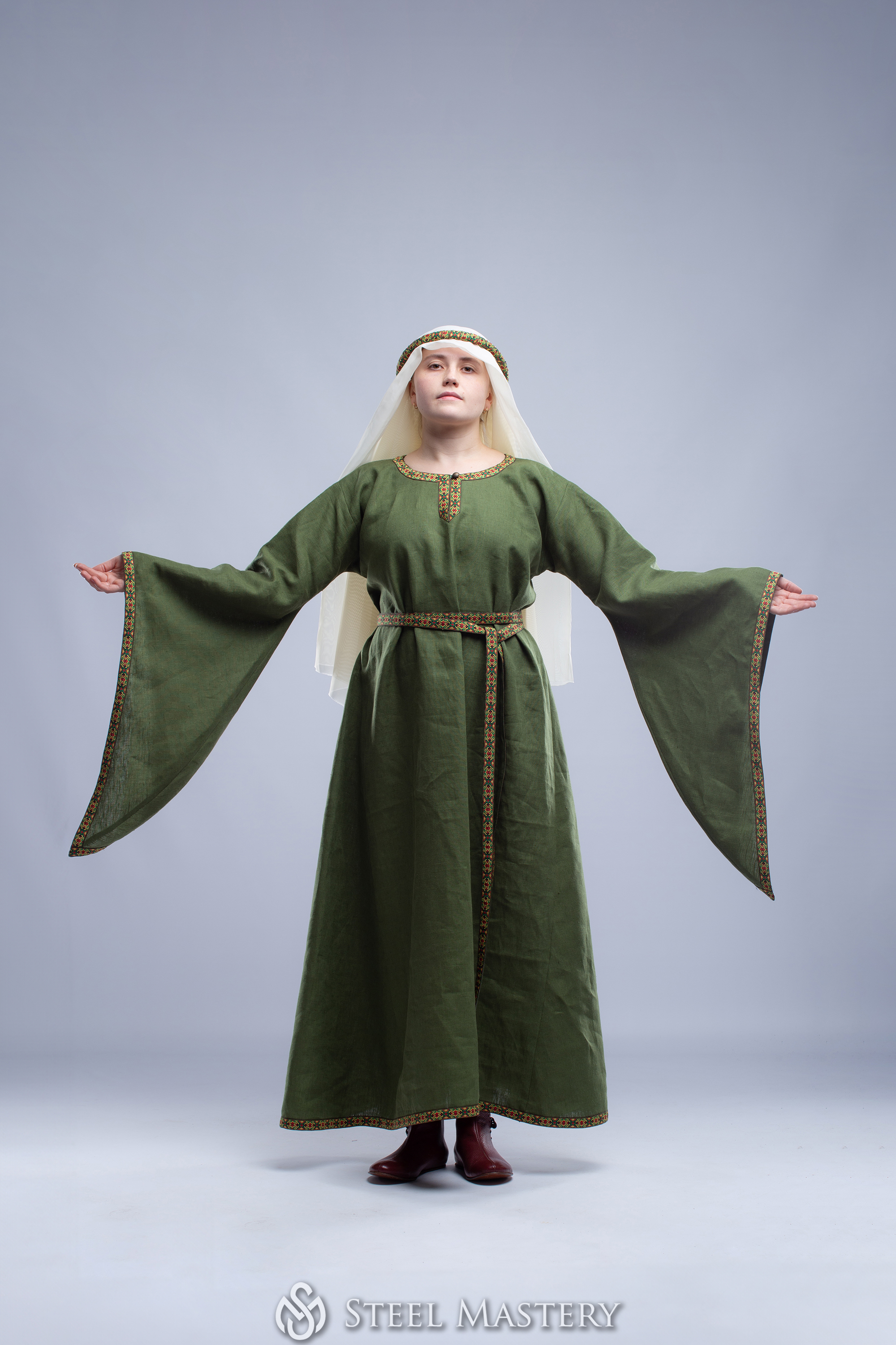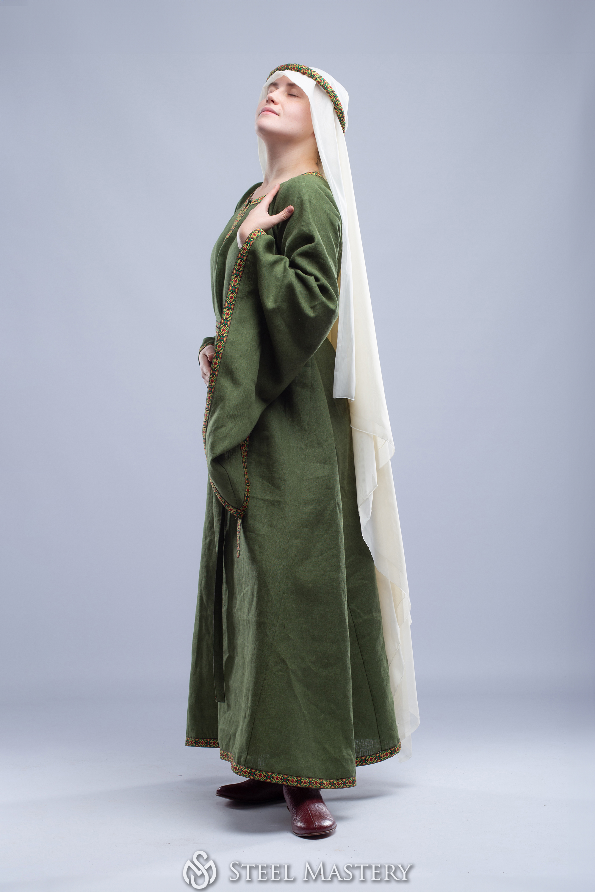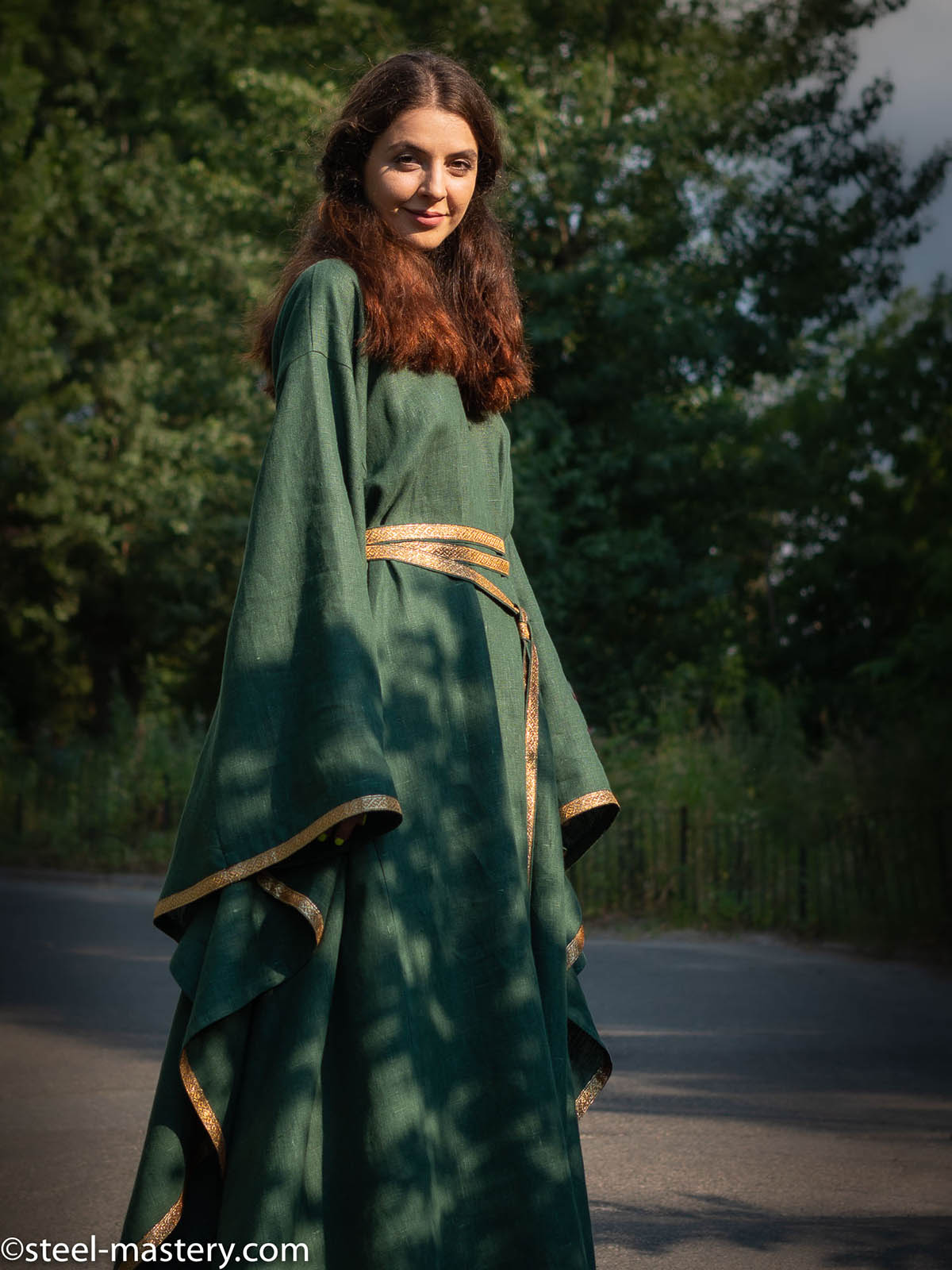 Try to feel yourself like a sophisticated medieval Lady, delicate strolling through the hall of the castle or festival field at this medieval princess dress. Gentle picking up a long dress hem and hiding thin hands in the wide sleeves of your bliaut. Realize this dress is not just beautiful medieval woman costume, it allows any of modern woman to feel like a fragile lady of the 12th century, a damsel in distress or a beautiful lady in the window.
