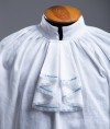 The shirt worn by men during this period was typically made of linen or cotton and was a loose-fitting garment that reached below the waist. It had a high collar, and pleated jabot with lace decoration on the bottom. It was attached to the neckband of the shirt and hangs down over the chest. The shirt was usually worn underneath the other garments and served as a base layer.