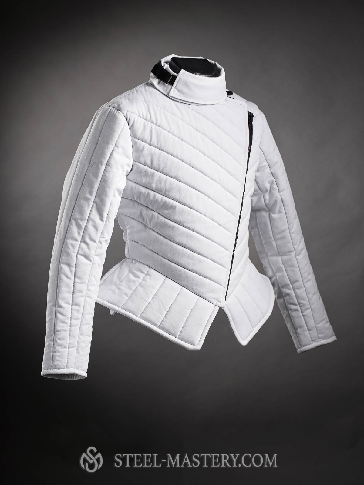 Modern high-leveled padded HEMA torse protection with the silhouette of classic fencing camisoles. Today's gambeson is equipped with a high stand-up turn-down collar and functional cut with chest overlapping.