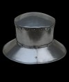 This medieval steel helm got its name because of shape wide-brimmed hat. For better protection, kettle hat could be equipped with gorget and was being worn over the padded or mail coif. Also, one of main advantages of such type of head armor was protecting against sun rays.