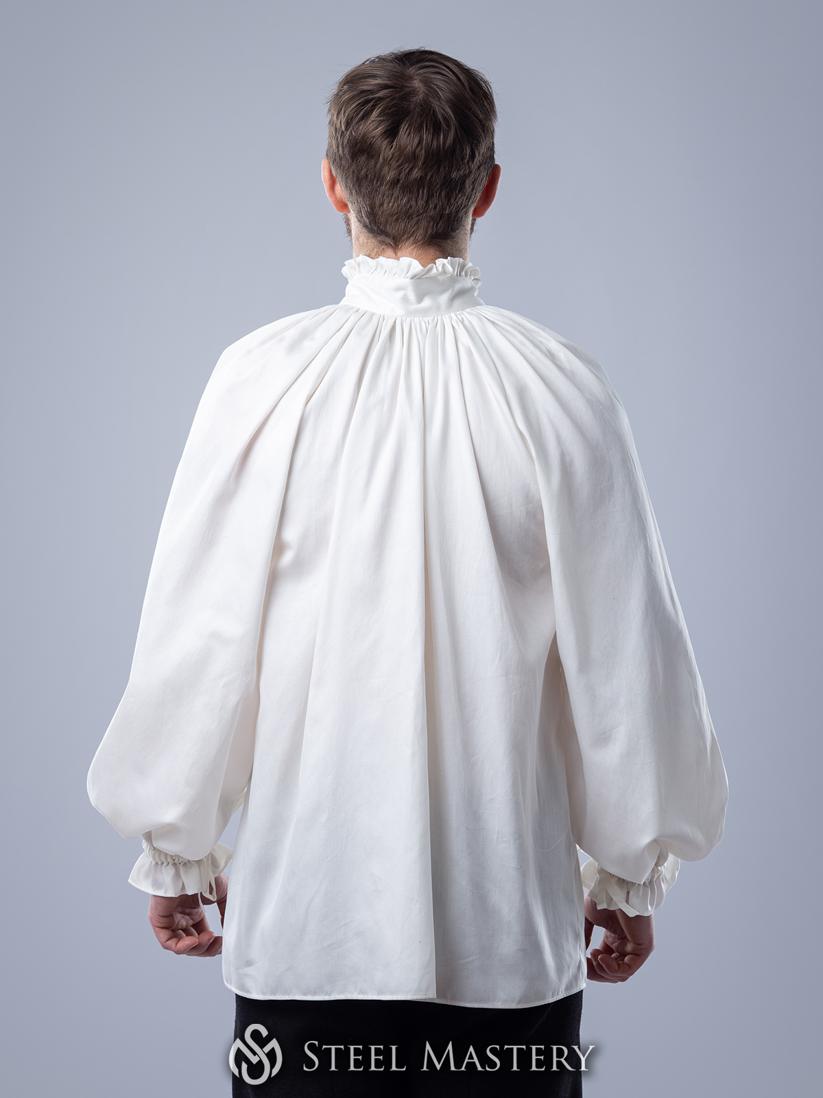 Medieval men's underwear shirt with rouches and stand-up collar.