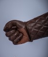 Our gloves are constructed from robust leather, fortified with a padding layer to enhance protection and cushioning against impacts. The incorporation of decorative stitching on the fingers, back of the hand, and cuff not only adds a touch of elegance but also provides an additional layer of defense.