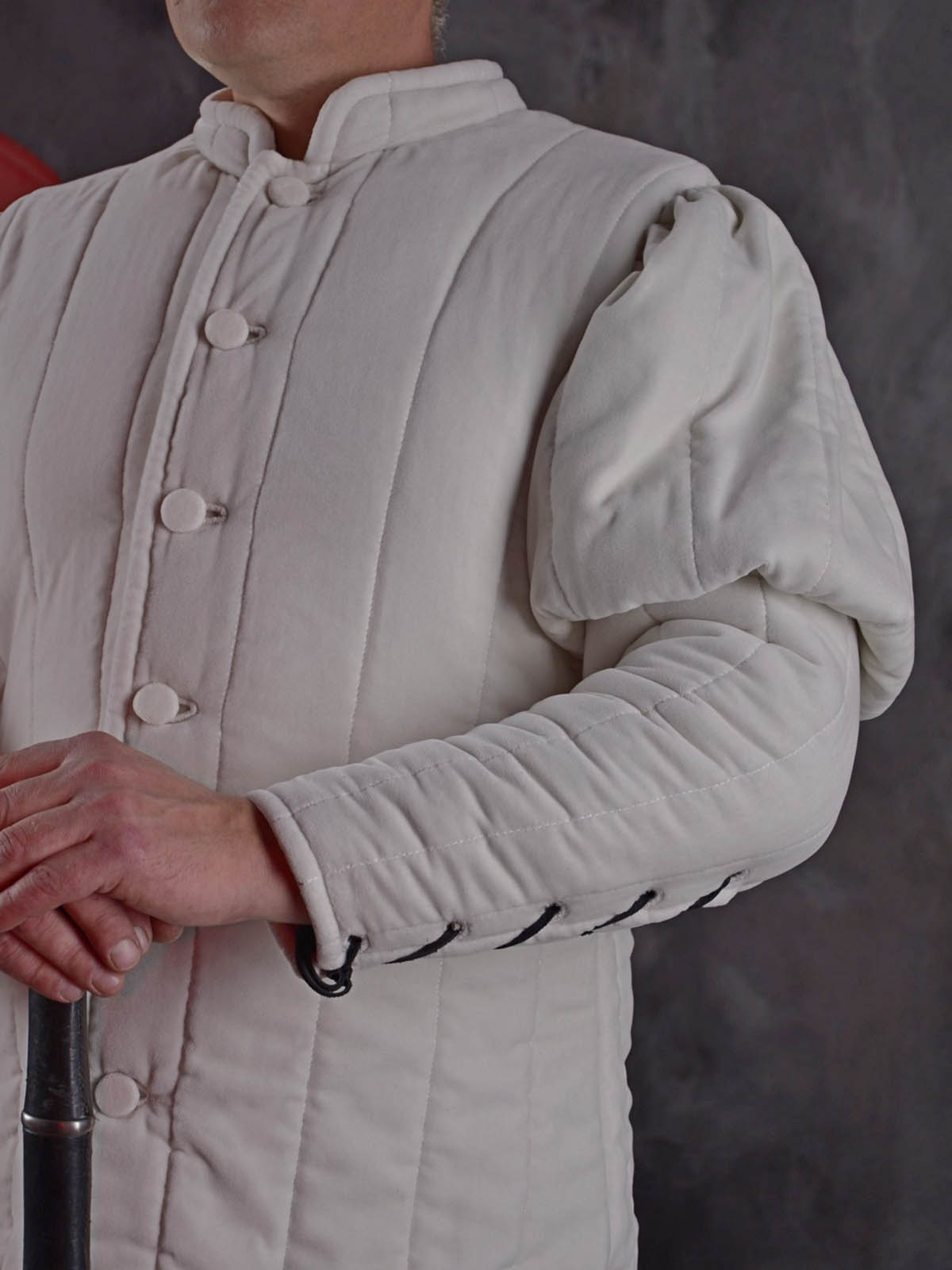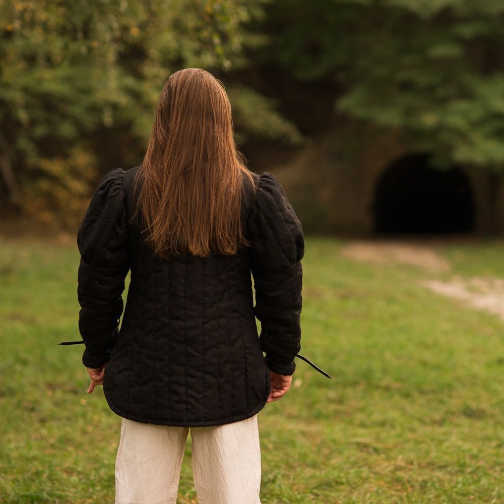 Also, please have a look at these padded gambesons of the XV century: medieval aketon of leather, arming doublet of the 1405 year. This model is upper-thigh length. However, if you prefer long gambeson, you might be interested at Estern gambeson or long gambeson of the XI-XV centuries.