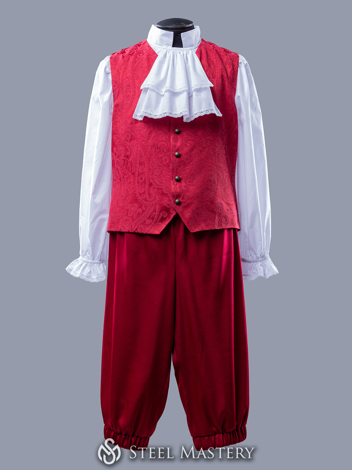 Zusätzlich zu diesem prächtigen Schaube mit Kunstpelz fügen wir auch eine Jacquard-Weste und ein Hemd mit Jabots hinzu, aber sie verblassen gegenüber dem Schaube. Sie können jedoch nach Belieben zusätzliche Kostümelemente bestellen.