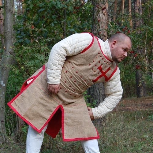 Brigandine of European knight represents one of the early versions of this type of medieval body armour. This model is recreated on the basis of archaeological and pictorial sources of the XIII-XIV centuries.
