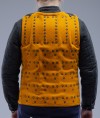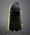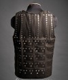 We used bottom of practical and well-acclaimed European brigandine of the 14-15th century and added wide vertical plates on the chest and back. Such construction protects body’s upper part especially well while shorter plates at the bottom allow you to move comfortably.