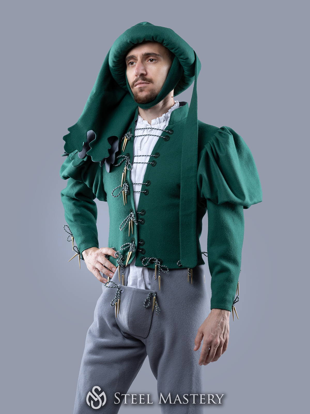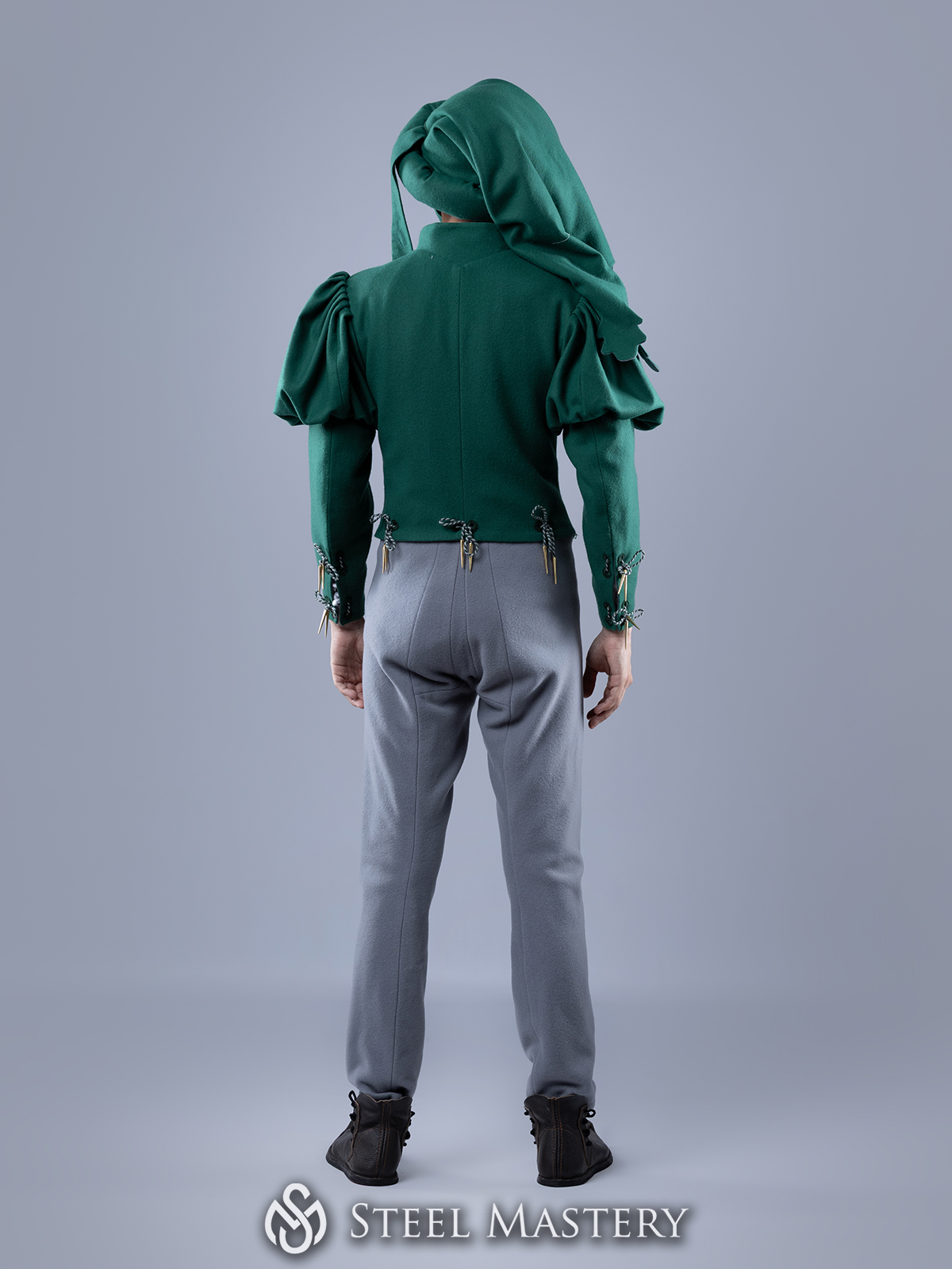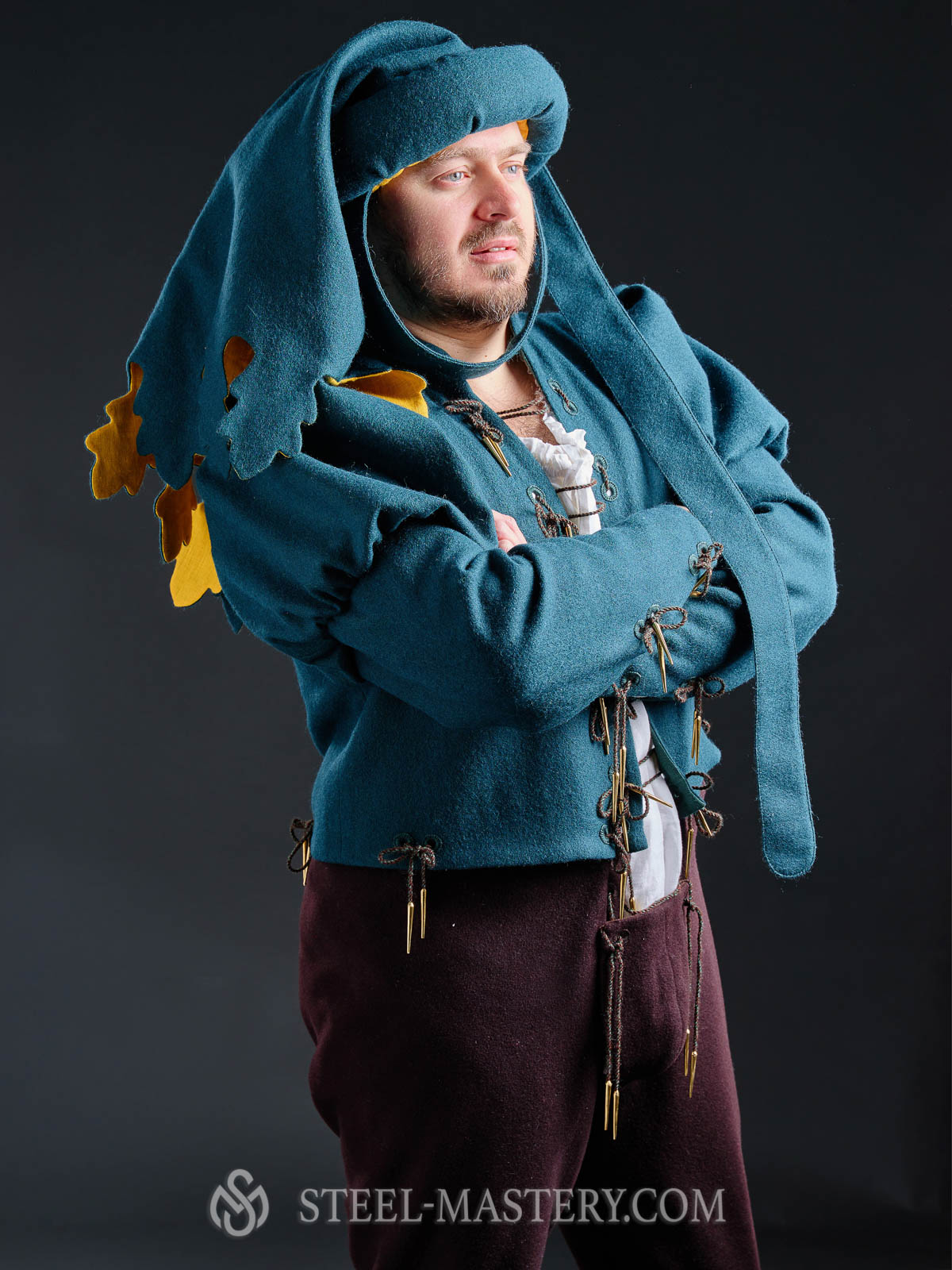 A true Burgundian dandy can't do without such stylish XVth century chips in his closet as a short doublet, closed chausses with a codpiece and a chaperon. So especially for fashionable men who are serious about reconstruction, we have prepared a practical and stylish costume set that will be the basis of any XVth century Burgundian men's costume.
