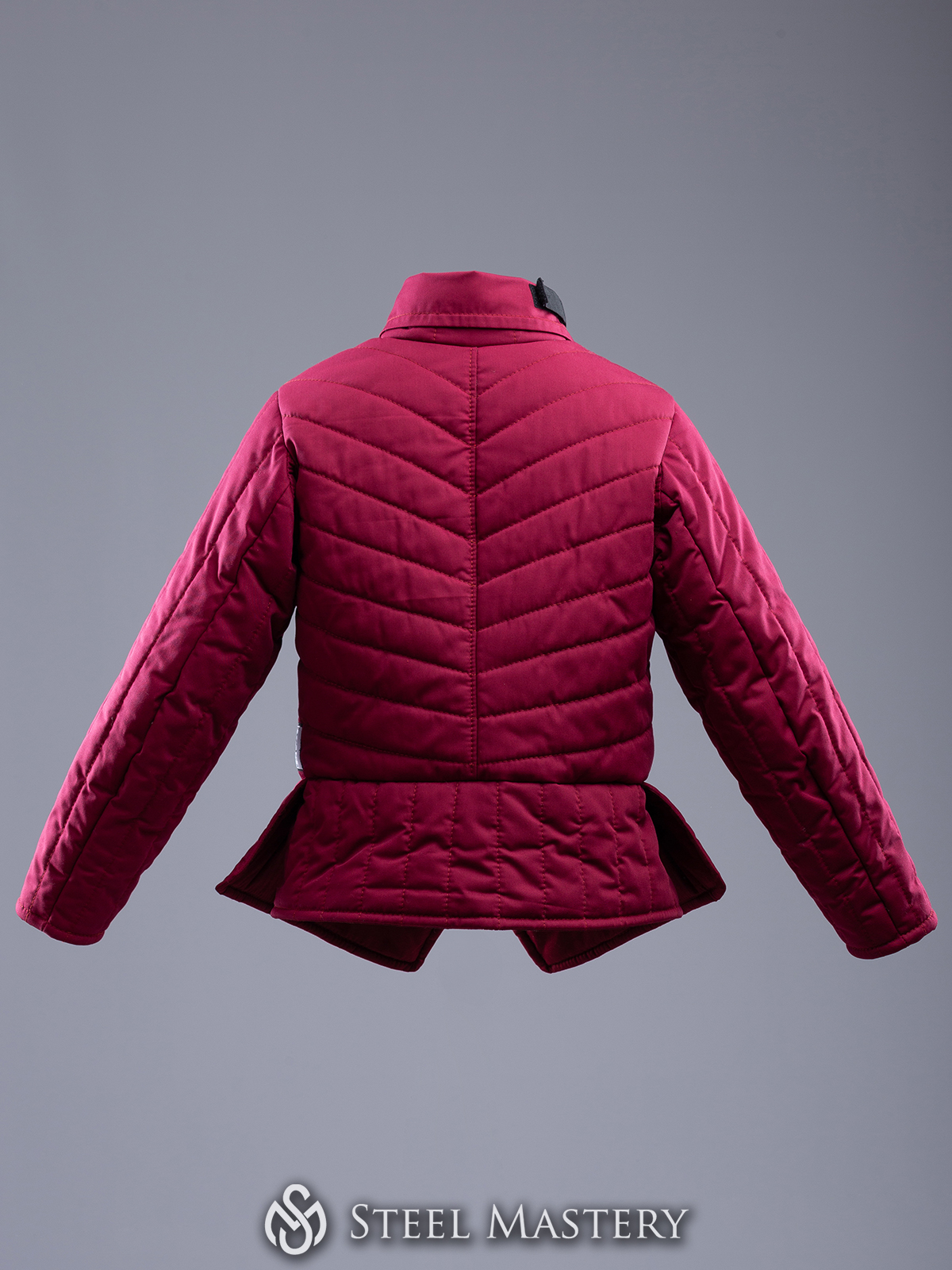 Gambeson jacket has a traditional for modern fencing equipment obliquely overlapping type - almost full on the chest and one-half on the stomach. Such a cut type allows not only to provide additional protection, but also increase mobility due to the jacket's lightning, which is important in combat. Looks like you get an additional soft chest shield, cool and stylish.