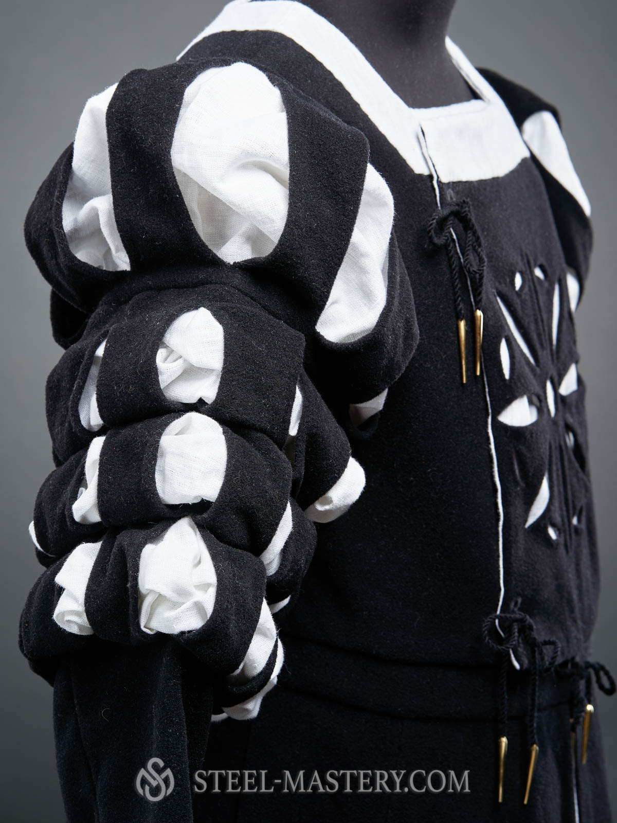 The Landsknecht coat is a stunning example of the fashion worn by the famous Landsknecht soldiers during the 16th century. These soldiers were known for their flamboyant dress and their distinctive costumes that were both functional and stylish.