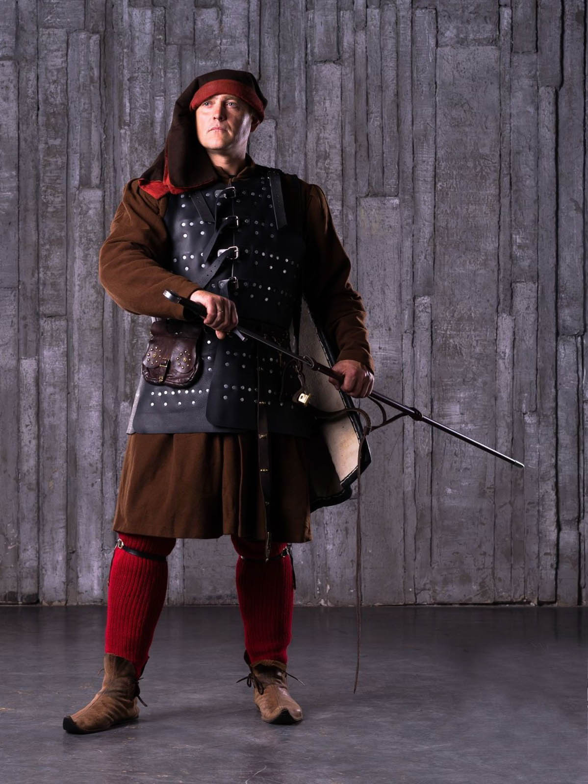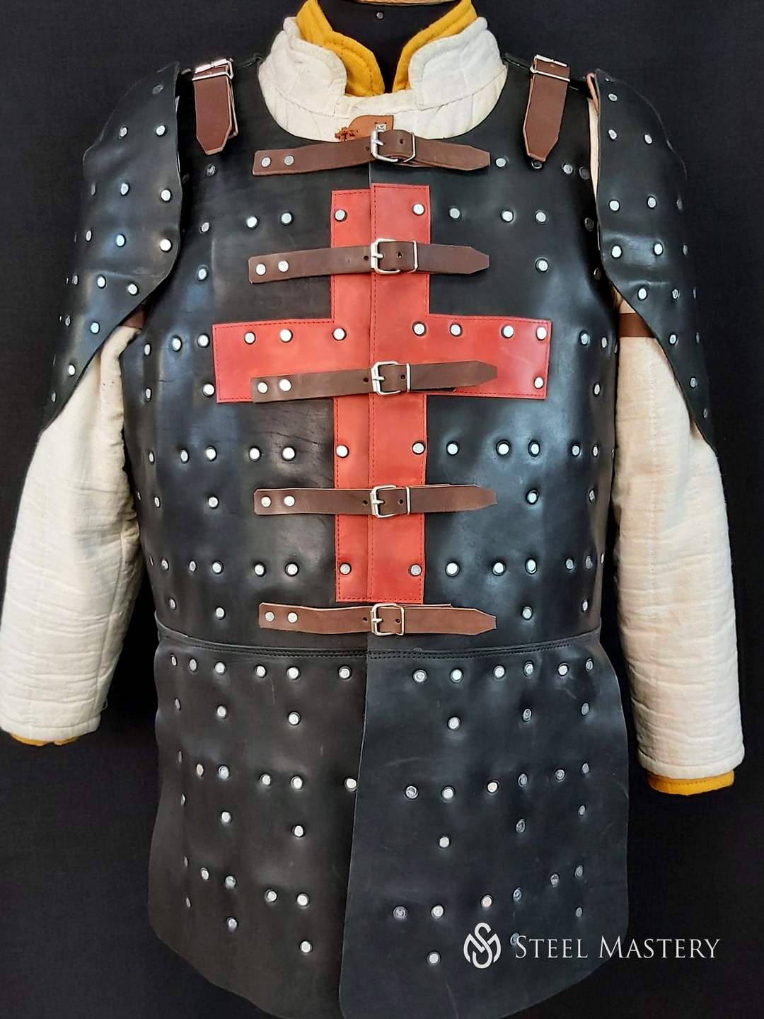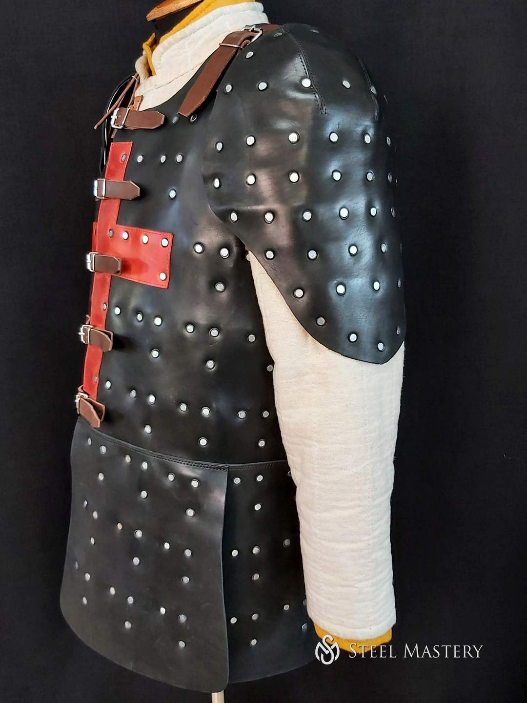 Leather brigandine was popular among the warriors in the early XV century. Soldiers, who took participation in close fights, preferably used such medieval body armor, as leather is very firm and durable material.