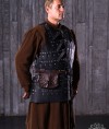 Made-to-measure medieval brigand body protection is completely handcrafted. The front side of leather battle armor consists of two parts, the same as back one. There are belts with buckles for fastening from the front of the brigandine. Skirt has five sections and doesn't hinder movements during the fighting.