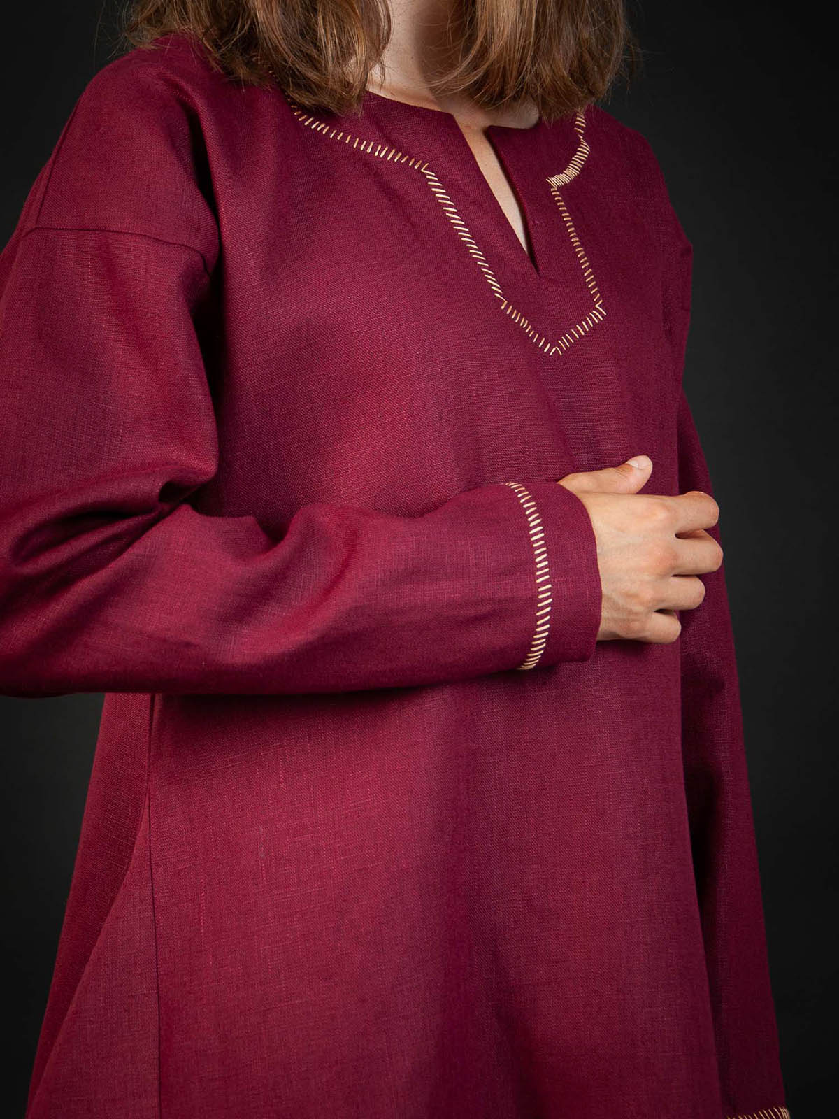This model of shirt is made in typical European style of IX-XII centuries. It was a basic element in the traditional multilayered medieval costume.