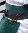 This model has leather sole, that makes chausses very comfortable. They are fastened with leather strings to the fabric belt or braies.