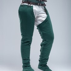 Classic medieval padded chausses are acceptable for any type of armour. They provide a good protection for warrior's legs, amortize hits well and do not limit mobility.