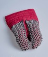 We use only 100% natural materials for sewing and padding. Mail inserts on the fingers are being made of mild steel rings 2 x 10 mm. Type of butting is 4 rings in 1.