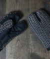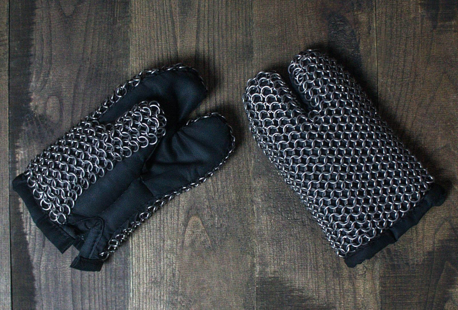 We use only 100% natural materials for sewing and padding. Mail inserts on the fingers are being made of mild steel rings 2 x 10 mm. Type of butting is 4 rings in 1.