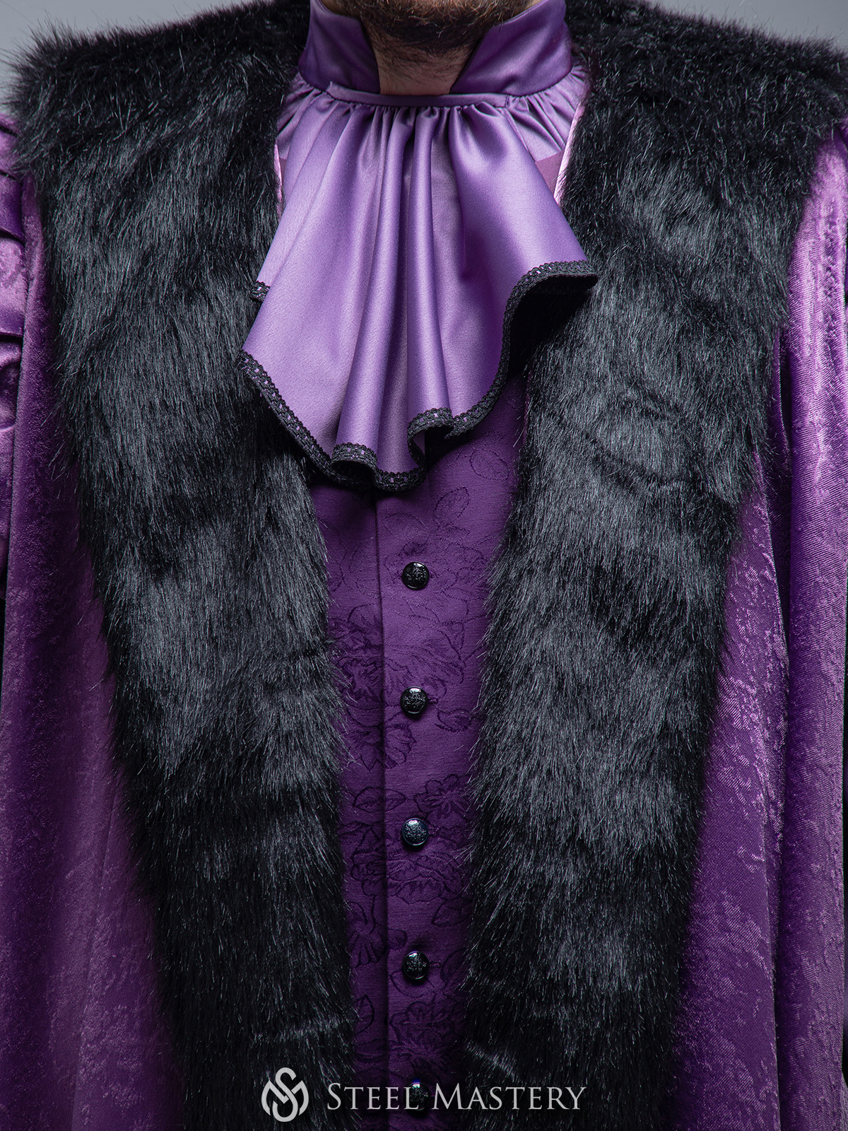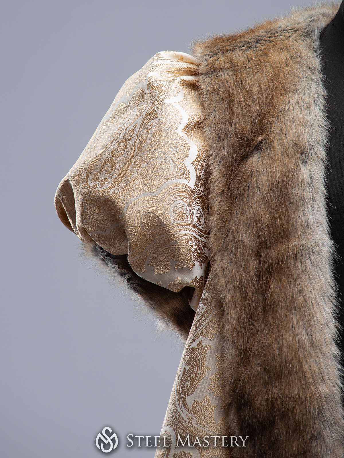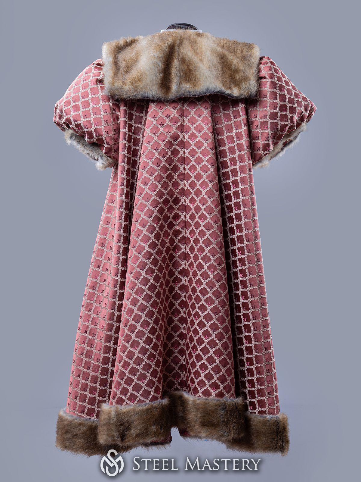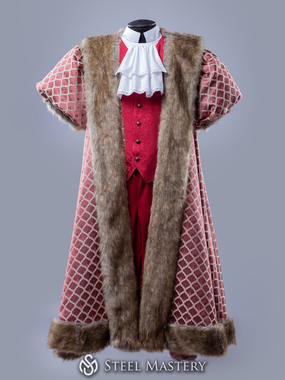Esta es una estilización de la schaube del siglo XVI. Como era costumbre en el Renacimiento, esta túnica puede hacerse de terciopelo o jacquard, forrada con lino o algodón. Sin embargo, si realmente desea encarnar la imagen de un rey magnífico, estamos listos para hacerle un abrigo de piel con forro de brocado, seda o terciopelo.