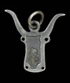 Ancient Tripillian charm in the form of a bull's head – cast replica of the finding from Verteba Cave. Pay special attention to the geometric female figure on the bull's head. She is depicted using the straight strict lines characteristic of Bronze Age art and embodies the ancient myth of the sacred marriage between a monster-God and a woman. Also, it is a unique locket for the Taurus sign of Zodiac, no like any other.
