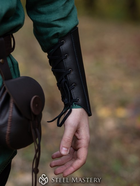 In the heart of Sherwood Forest, where the shadows danced among the ancient trees, there was a legend whispered among the leaves—a legend of the Bracers of the Forest Guardian. Crafted from the darkest black leather, they bore no ornate designs, only a simple elegance that belied their hidden power.