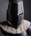 Great helm appeared approximately in the end of the XII century in times of Crusades and was in use among cavalrymen until the XIV century.