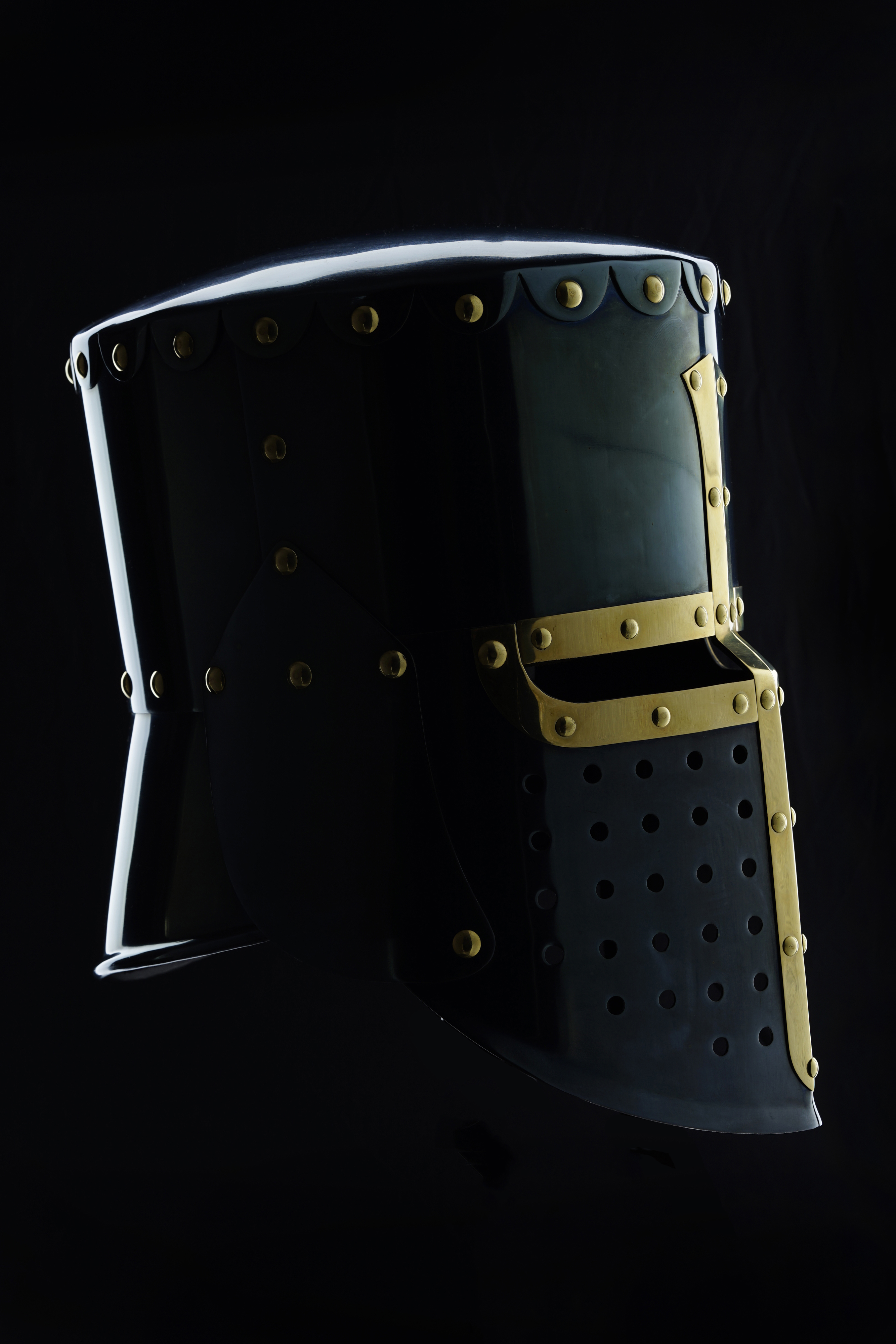 Steel Mastery website presents 3 pothelms. One of the first type - Great Helm (topfhelm) and two of the second type: the Later faceguard Great Helm and our handsome one - the Great Helm of the first half of the 13th century.