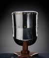The shape of the helmet changed from conical to cylindrical. The former half-mask was solved drastically - in the cylinder there were simply holes for the eyes and a lot of small holes below for ventilation. And on the top of it they just riveted a metal circle. That is how we got the pothelm, affectionately known amongst re-enactors as the bucket.