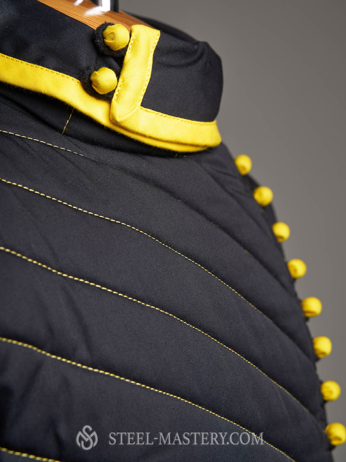 If you order contrast edge for this model – front edge would be without contrast color. But we can make buttons with contrast color, which will complete the final look of gambeson :)