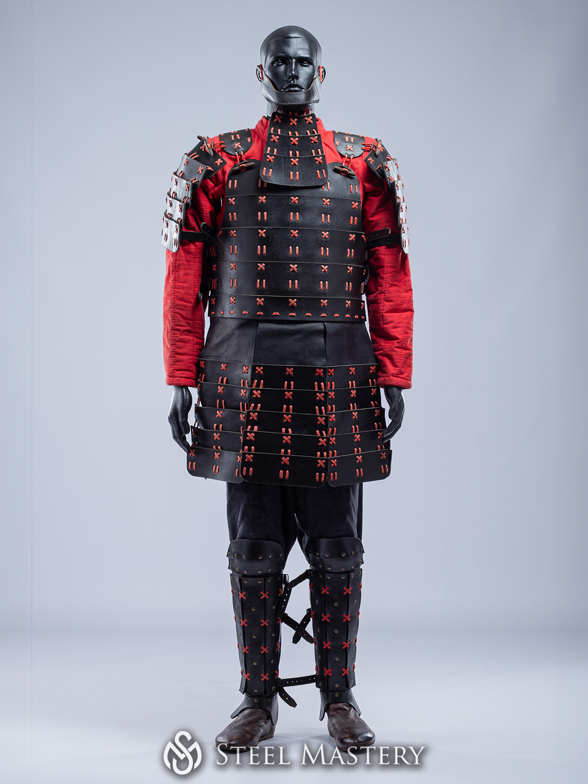 Cuirass with kusazuri skirt made of tied together black leather plates (hard belt leather 3-4 mm thick)