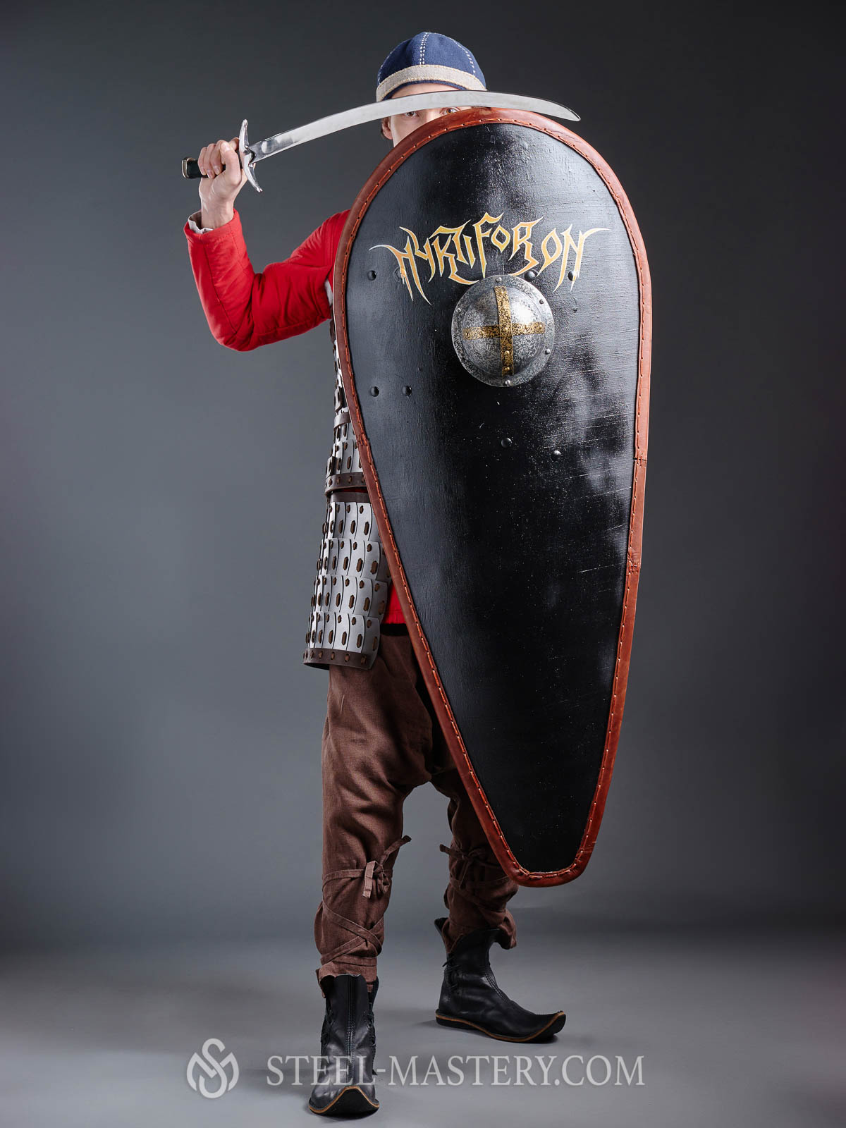 Kite shield is a type of medieval defense, which was popular in the X-XIV centuries all over Europe and Rus’. It is also known as almond shield due to its shape, pointing at the bottom.