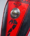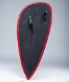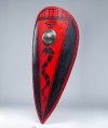 Almond shield was usually made of wood, covered with leather and completed with steel umbo in the center and has length 140 cm (55 inches). Edges of shield were trimmed with steel or leather.