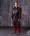 Made-to-measure medieval brigand body protection is completely handcrafted. The front side of leather battle armor consists of two parts, the same as back one. There are belts with buckles for fastening from the front of the brigandine. Skirt has five sections and doesn't hinder movements during the fighting.