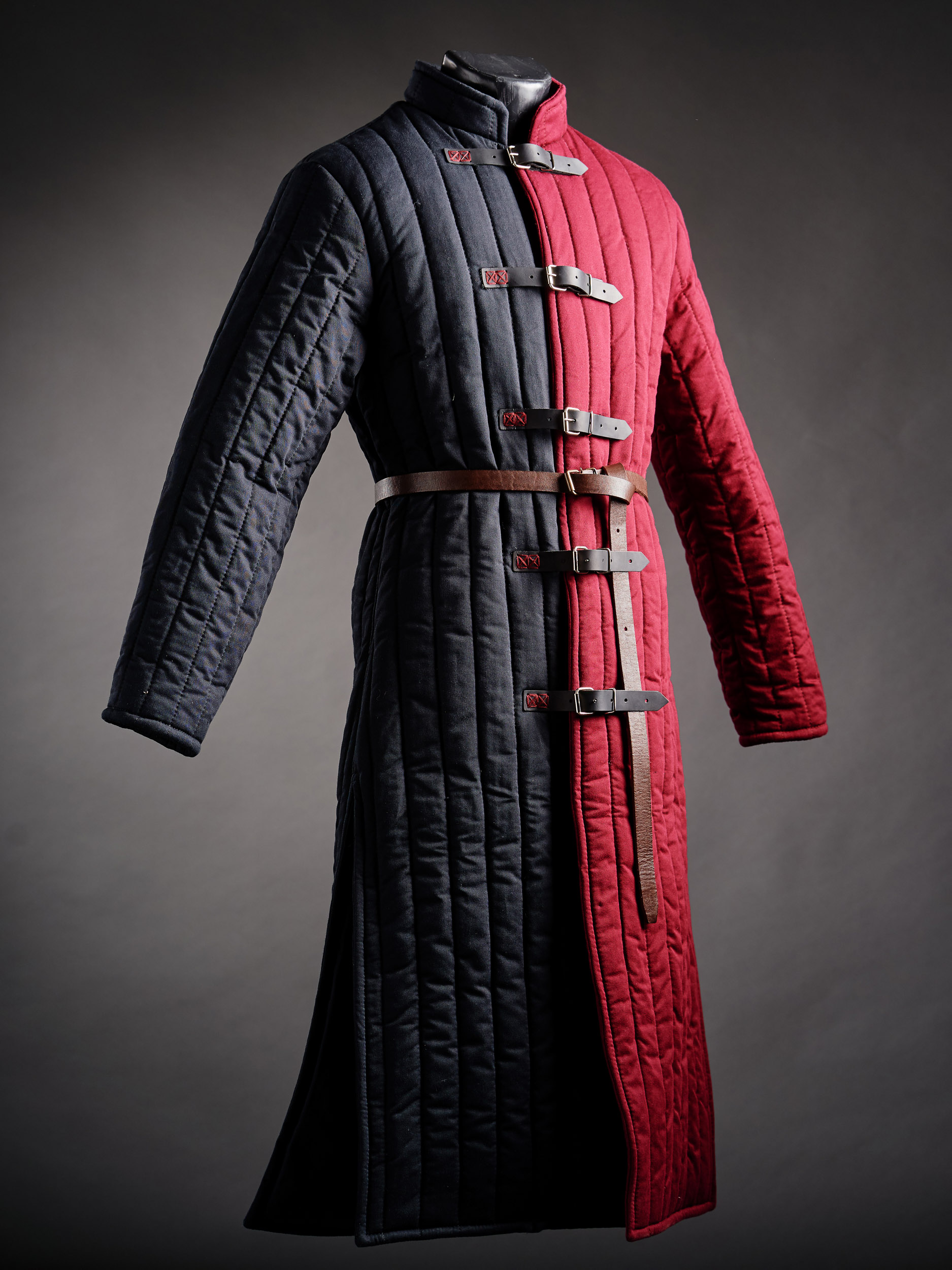 Black, blue, uncoloured (natural) or green gambesons were the most popular that time. If you choose half-coloured or quarter-coloured padded gambeson, please inform us at [email protected], what colours you prefer and its exact disposition.