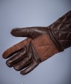 Our gloves are constructed from robust leather, fortified with a padding layer to enhance protection and cushioning against impacts. The incorporation of decorative stitching on the fingers, back of the hand, and cuff not only adds a touch of elegance but also provides an additional layer of defense.
