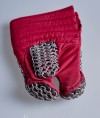 We use only 100% natural materials for sewing and padding. Mail inserts on the fingers are being made of mild steel rings 2 x 10 mm. Type of butting is 4 rings in 1.