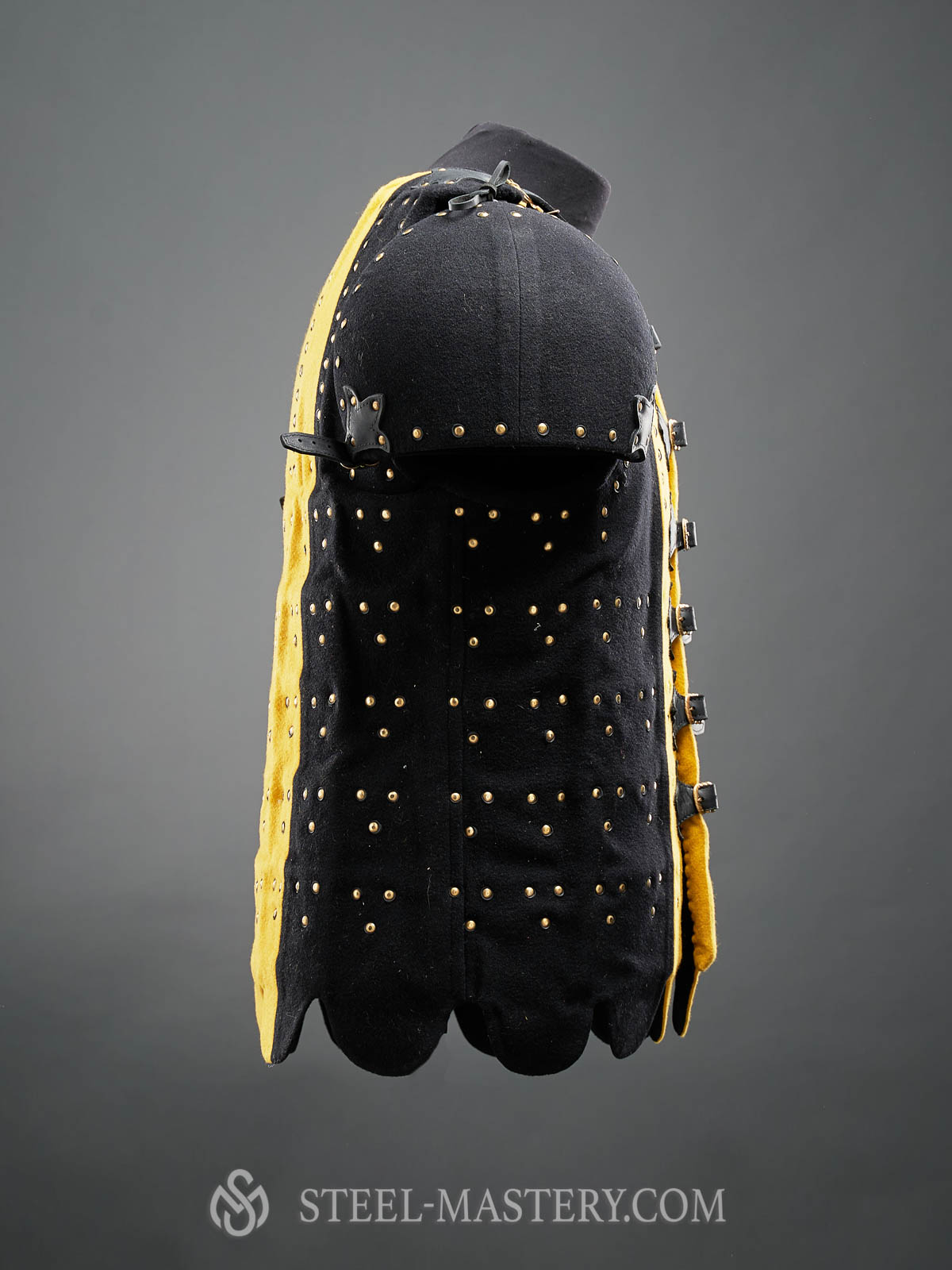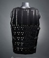 We used bottom of practical and well-acclaimed European brigandine of the 14-15th century and added wide vertical plates on the chest and back. Such construction protects body’s upper part especially well while shorter plates at the bottom allow you to move comfortably.
