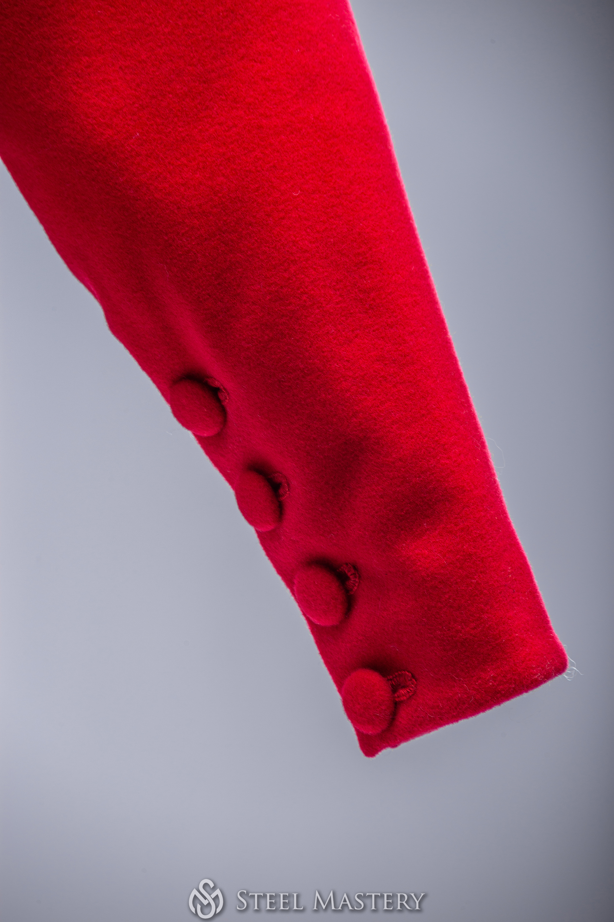 One of the defining features of the Burgundian doublet was the use of buttons, which were both functional and decorative. These buttons were typically made from materials like metal, bone, or wood, and were often covered with fabric to match the doublet. They ran down the front of the garment, allowing it to be securely fastened and providing a tailored fit.