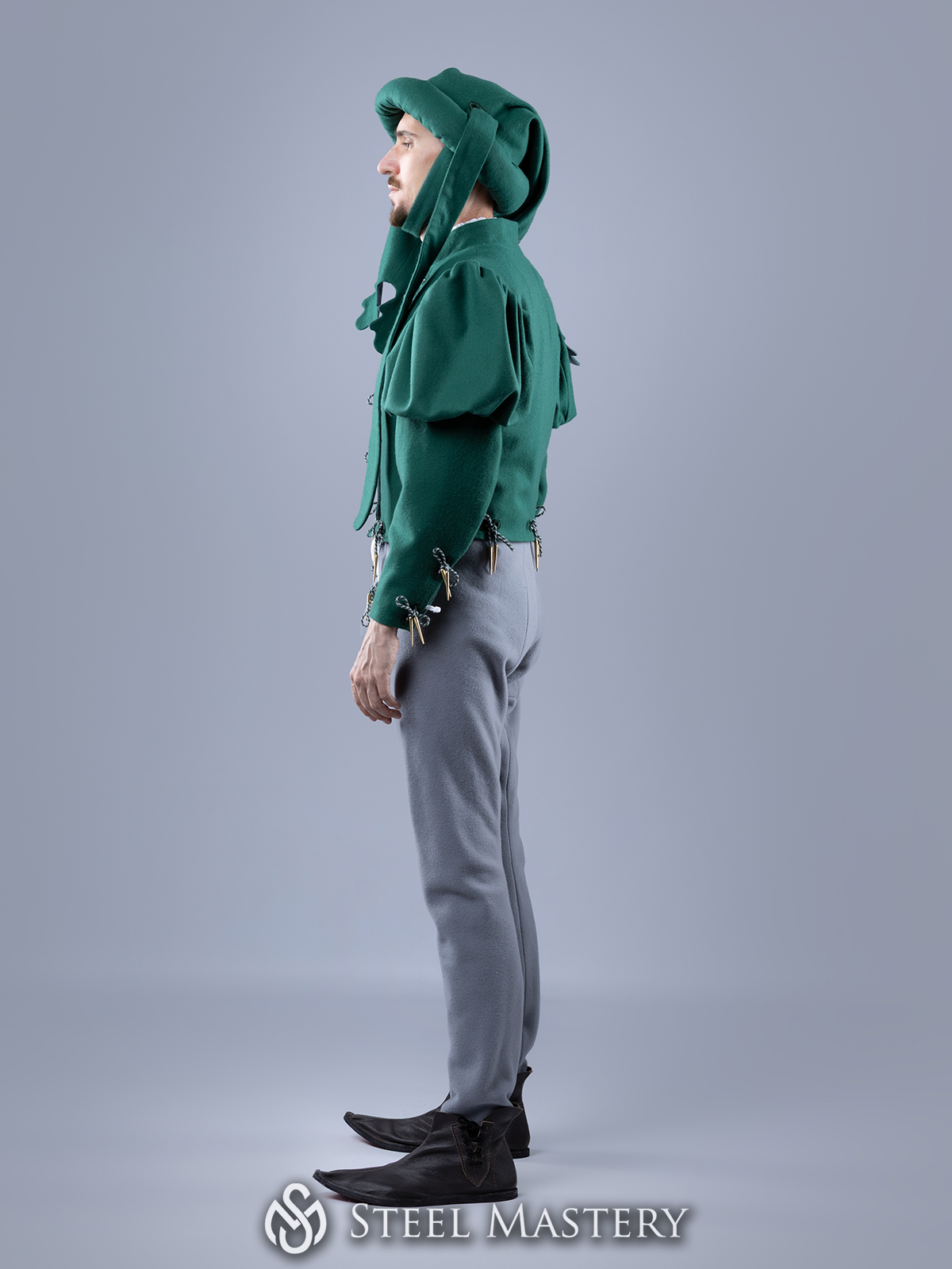 A true Burgundian dandy can't do without such stylish XVth century chips in his closet as a short doublet, closed chausses with a codpiece and a chaperon. So especially for fashionable men who are serious about reconstruction, we have prepared a practical and stylish costume set that will be the basis of any XVth century Burgundian men's costume.