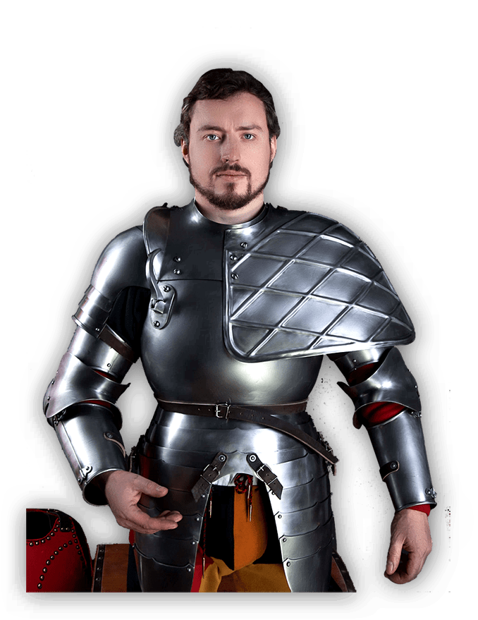 Dear friend, welcome to Steel Mastery — medieval shop, where you can choose and buy armour for any taste! We are medieval armour maker since 2001. Our products are popular and demanded because of its high quality, durability and accordance to historical analogues.